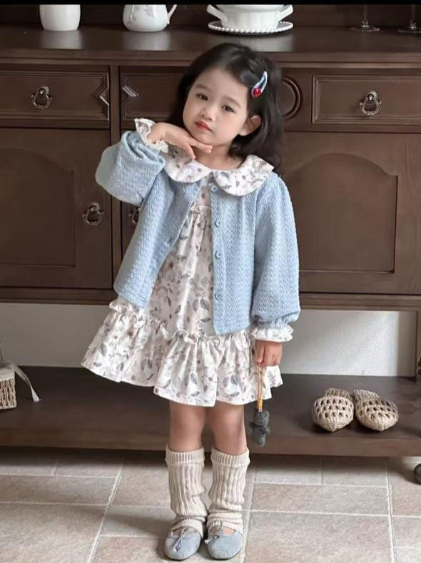Floral Corduroy Frock with Cardigan