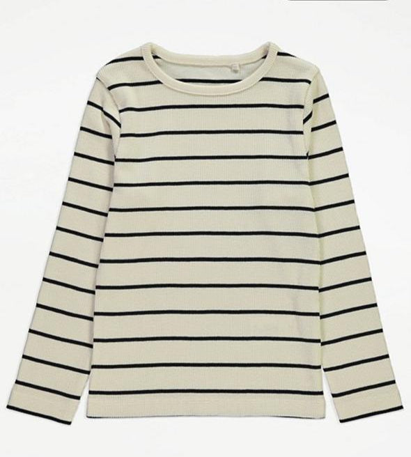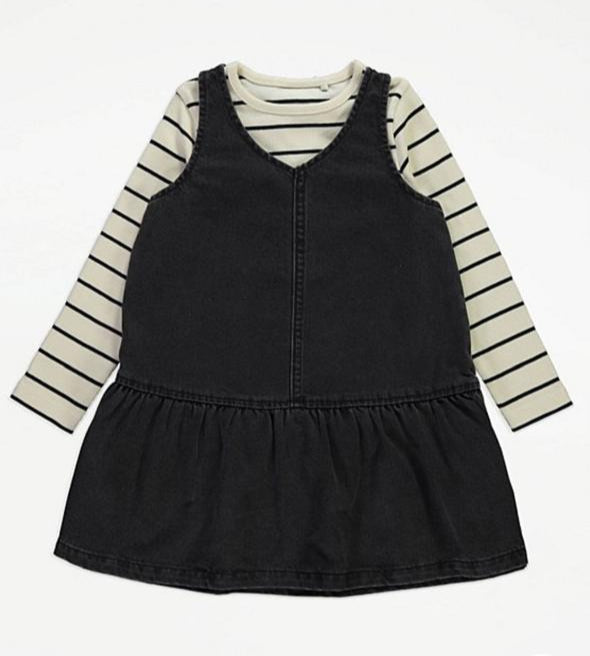 George Cream Striped Top & Denim Frill Pinafore