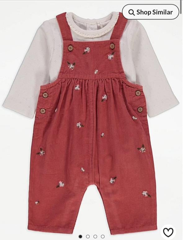 George Embroidered Corduroy Dungaree & Bodysuit Set
