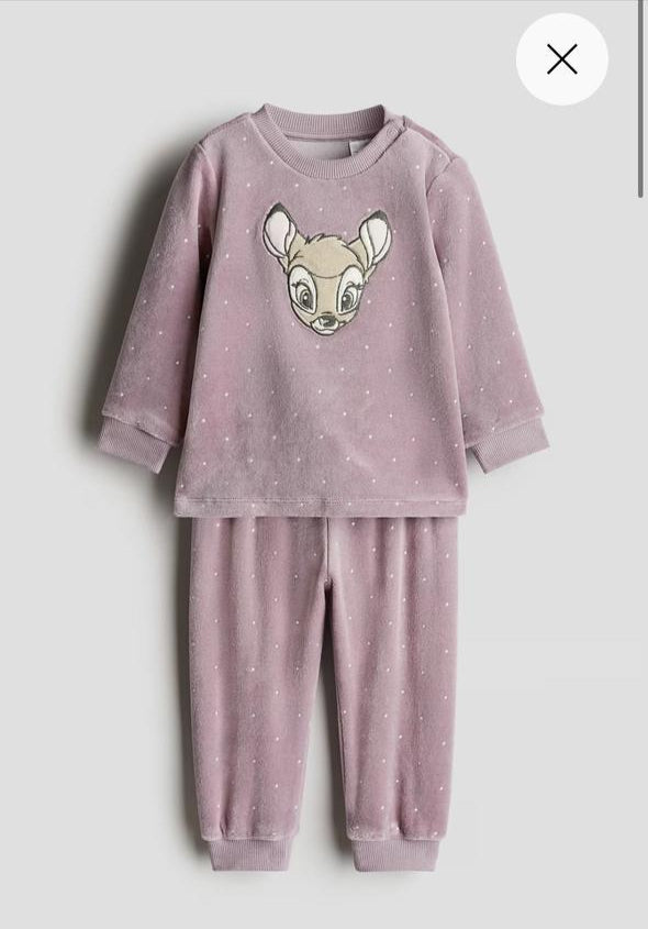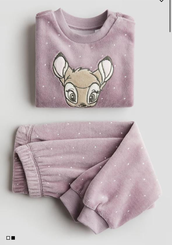 H&M Embroided Deer Velour Shirt & Trouser Set