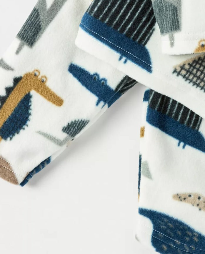 Juniors All-Over Dino Print Fleece Shirt & Trouser Set