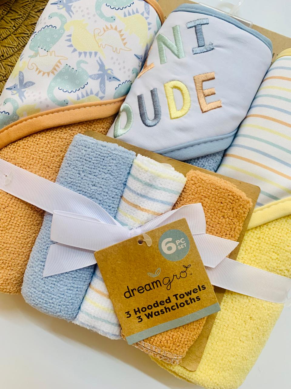 Pack of 3 "Mini Dude" Dino Hooded Towel & Wash Clothes