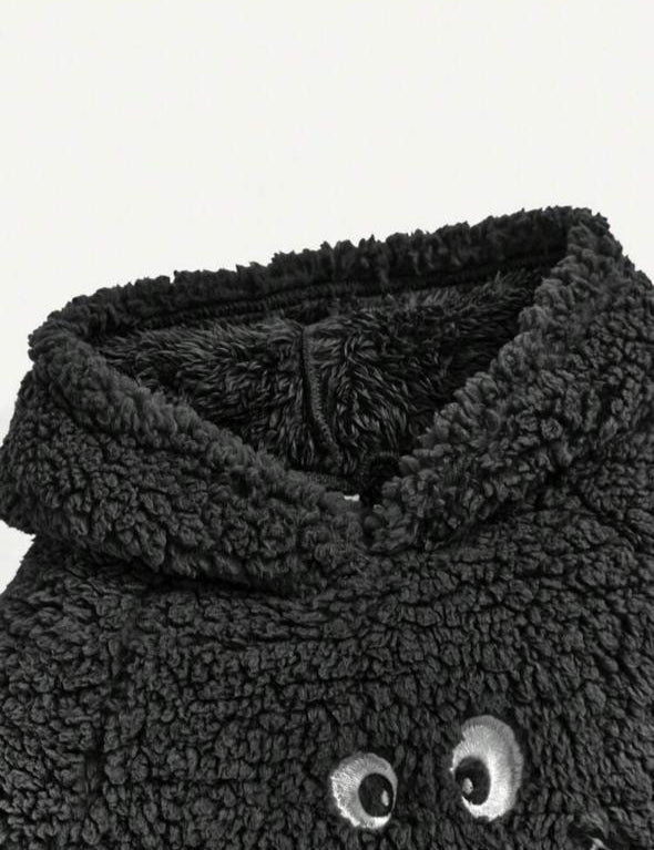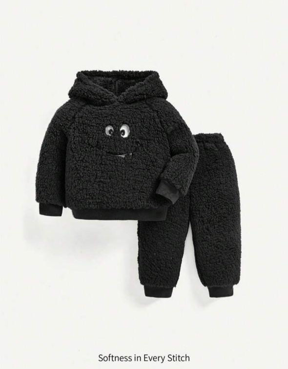 Shein Sherpa Black Hoodie Shirt & Trouser Set