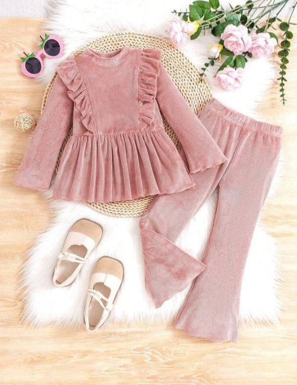 Shien Printed Frill on Pink Causal Knitted Frock & Trouser Set